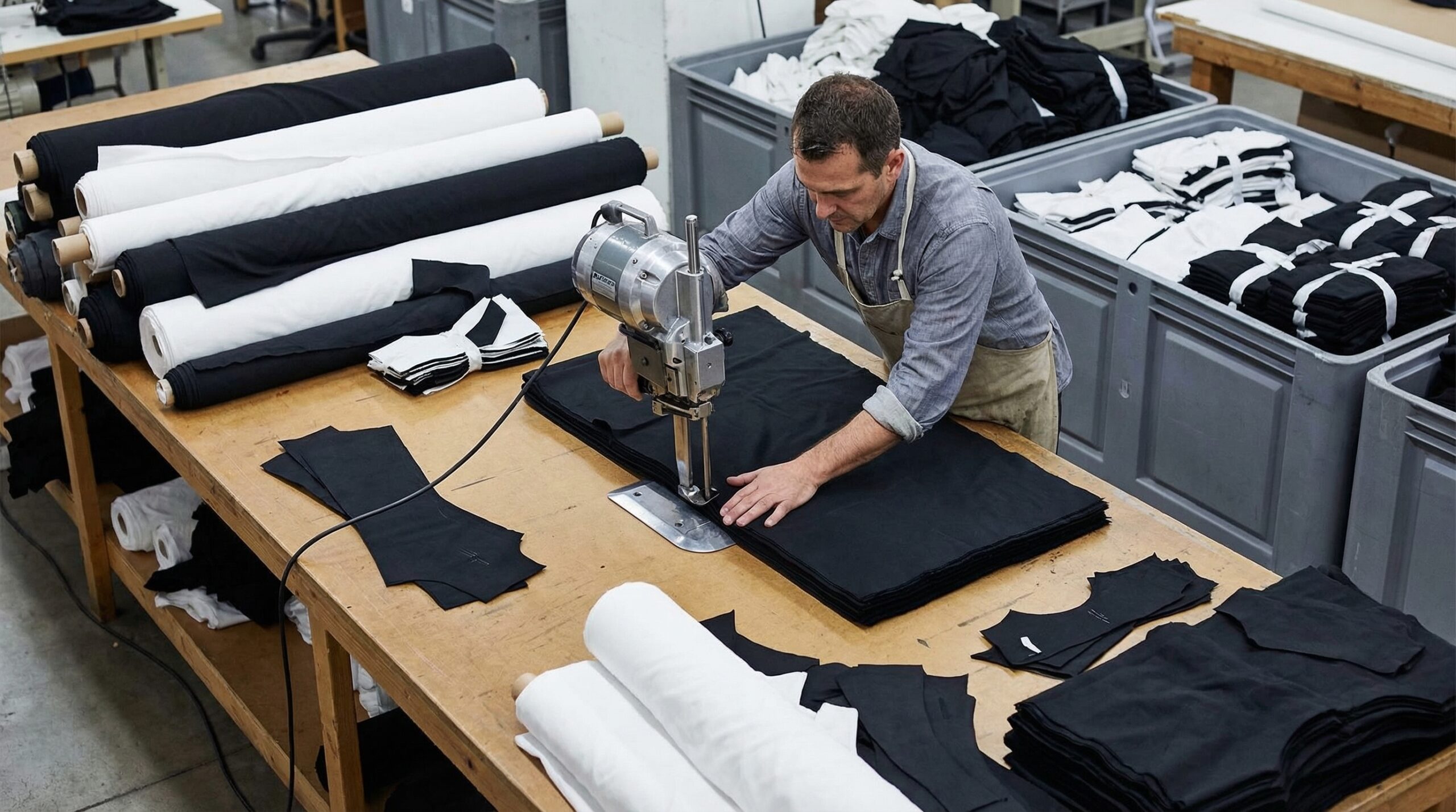 Manual band-knife and straight-knife cutting is also employed for specialized styles and smaller production runs. Fabric layers are carefully spread on flat cutting tables to guarantee uniformity across every single ply. Our marker-making techniques maximize fabric utilization and minimize waste, supporting our sustainable manufacturing values.